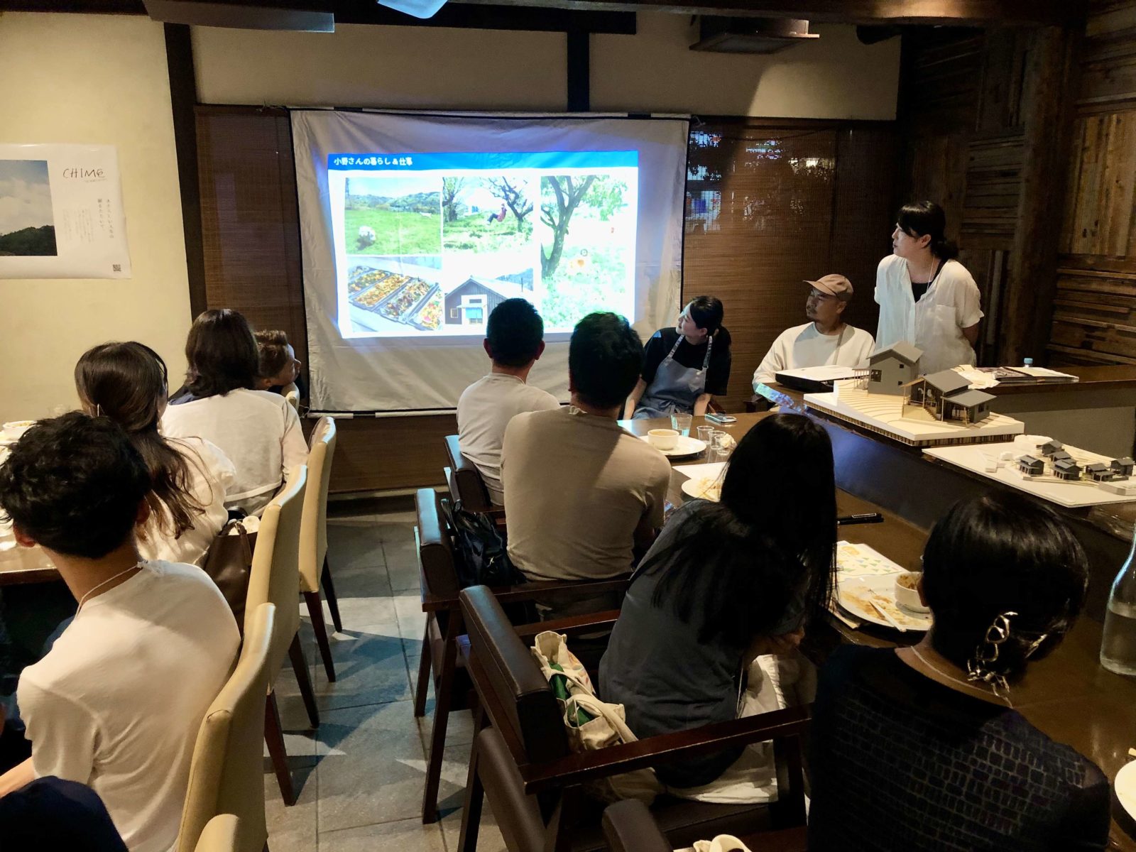 名水とコモンが育む“新しい分譲住宅”『CHIME白州』の開発プロジェクトリリースから約1ヶ月が経った8月2日(金)。前年12月に開催した1日移住体験ツアーの続編企画として、「めぐる白州出張Night@東京〜白州町の有機野菜と日本酒を味わう田舎暮らし座談会」を開催しました。